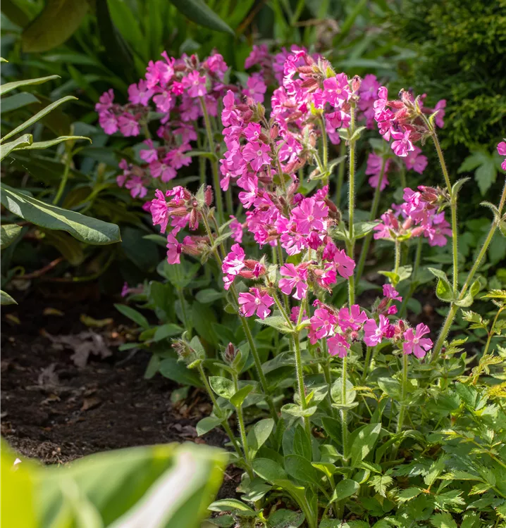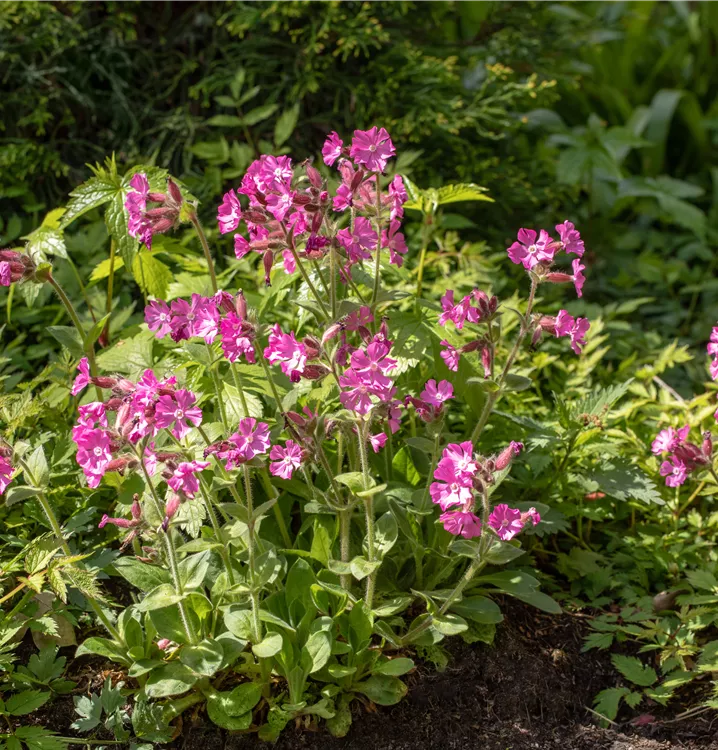 Silene dioica bildet radförmige, rosarote Blüten ab Juni.