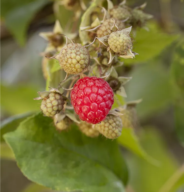 Die Gemeine Himbeere (Rubus idaeus) bildet rote Beeren. Diese sind aromatisch, süß im Geschmack. Für eine ertragreiche Ernte ab August schaffen durchlässiger, nährstoffreicher Boden und ein sonniger bis halbschattiger Standort optimale Bedingungen. Ihre weißen Blüten sind eine schöne Erscheinung.