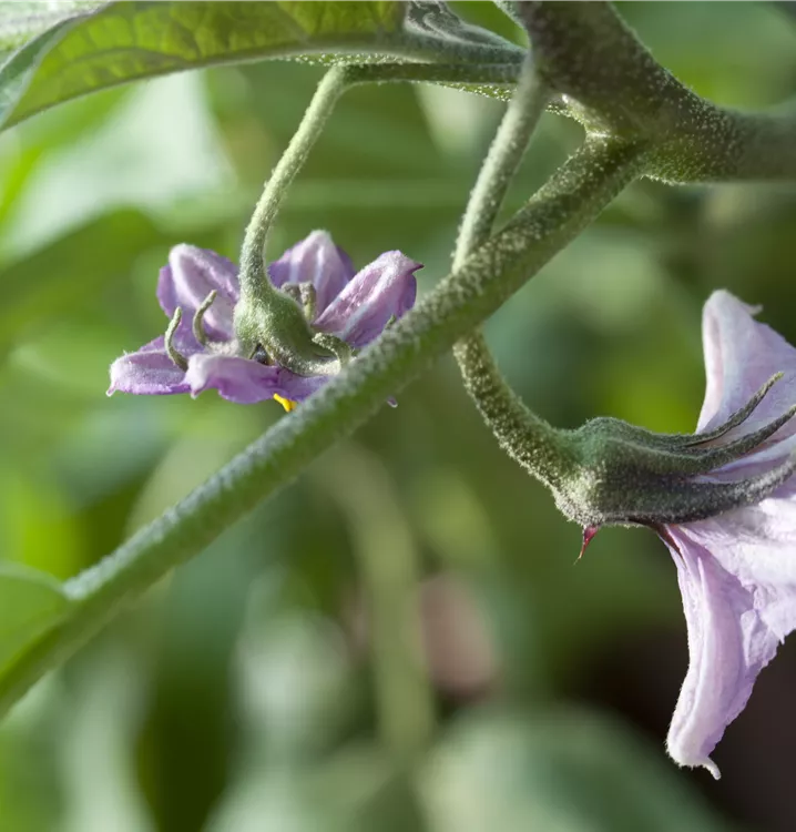 Die Aubergine (Solanum melongena) bildet Früchte, die mild schmecken und bereits ab August geerntet werden können. Für das optimale Wachstum der Aubergine werden ein sonniger Standort und durchlässiger, nährstoffreicher Boden benötigt.