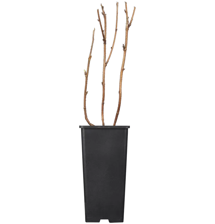 Die Triebe von Rubus idaeus 'Autumn Bliss'(s) sind bestachelt, rot-braun.