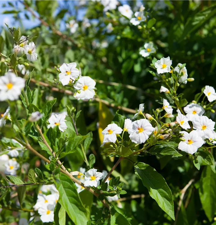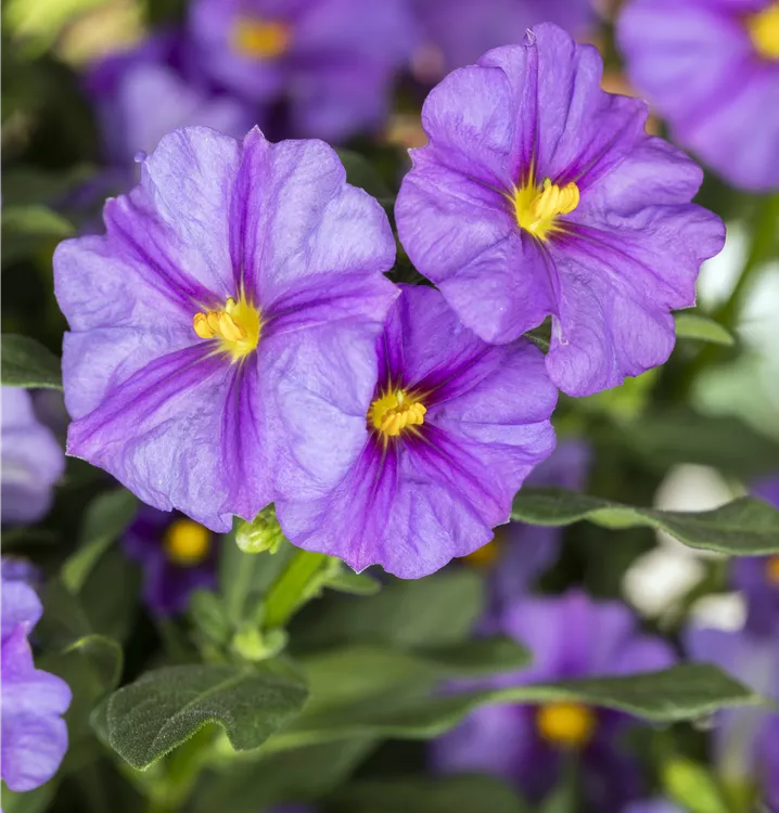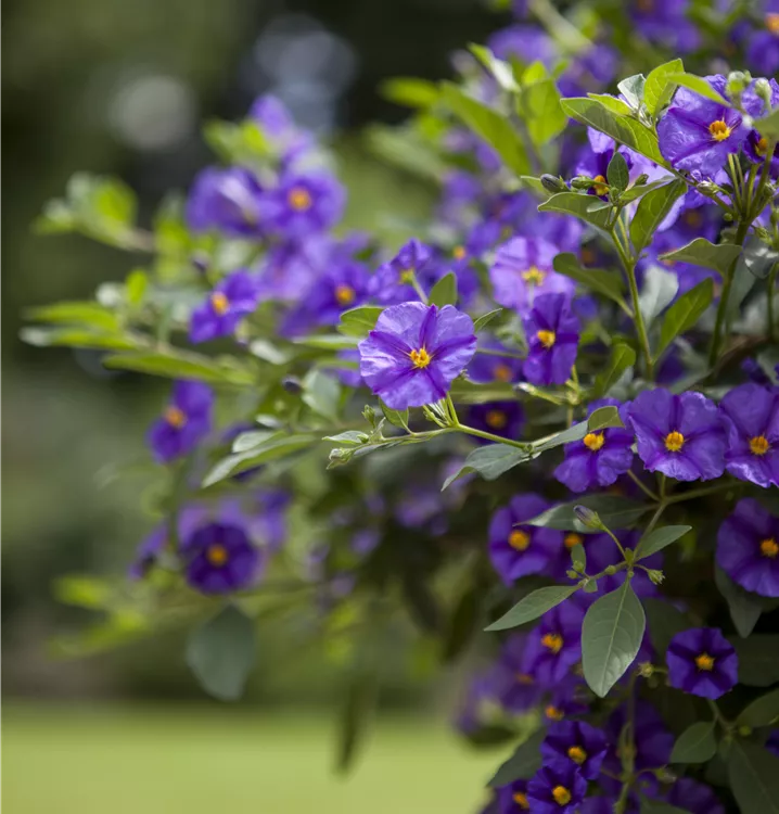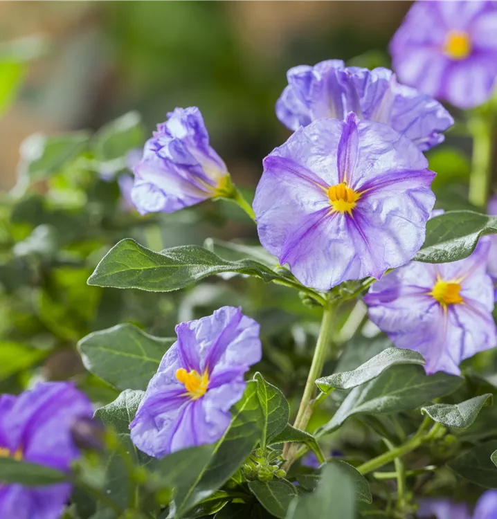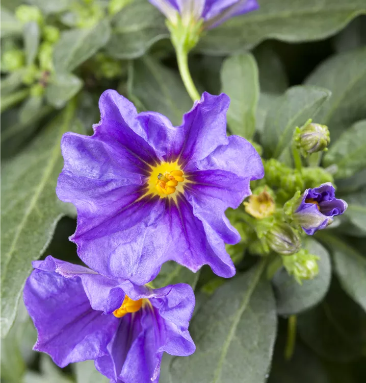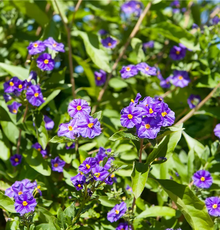Solanum rantonnetii bildet sternförmige, violette Blüten ab Mai.