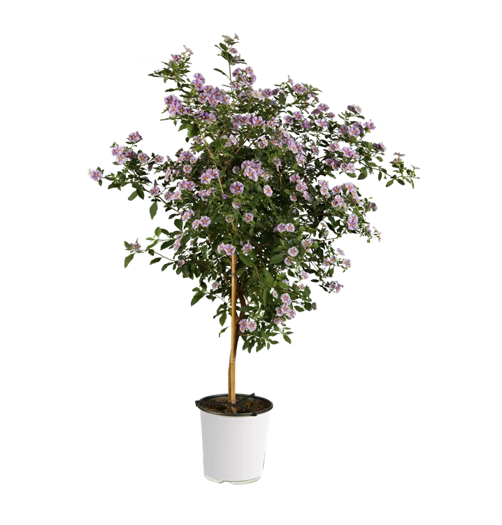 Der Enzianstrauch (Solanum rantonnetii) ist eine sehr beliebte Kübelpflanze. Seine dekorativen Blüten sind sternförmig und erscheinen von Mai bis Oktober. Die mittelgrünen Blätter sind eiförmig. Der Standort sollte möglichst sonnig sein. Eine durchlässige und nährstoffreiche Erde ist dabei ideal. Bei günstigen Bedingungen erreicht der Enzianstrauch eine Höhe von ca. 2 m und wird bis zu 1,5 m breit.