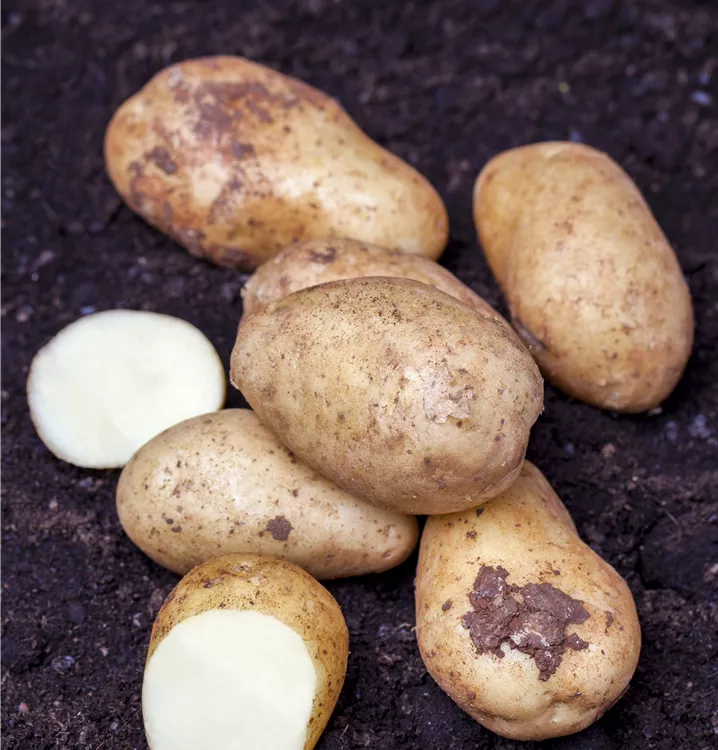 Die Kartoffel (Solanum tuberosum) bildet Knollen, die aromatisch schmecken und bereits ab August geerntet werden können. Für das optimale Wachstum der Kartoffel werden ein sonniger Standort und durchlässiger, nährstoffreicher Boden benötigt.