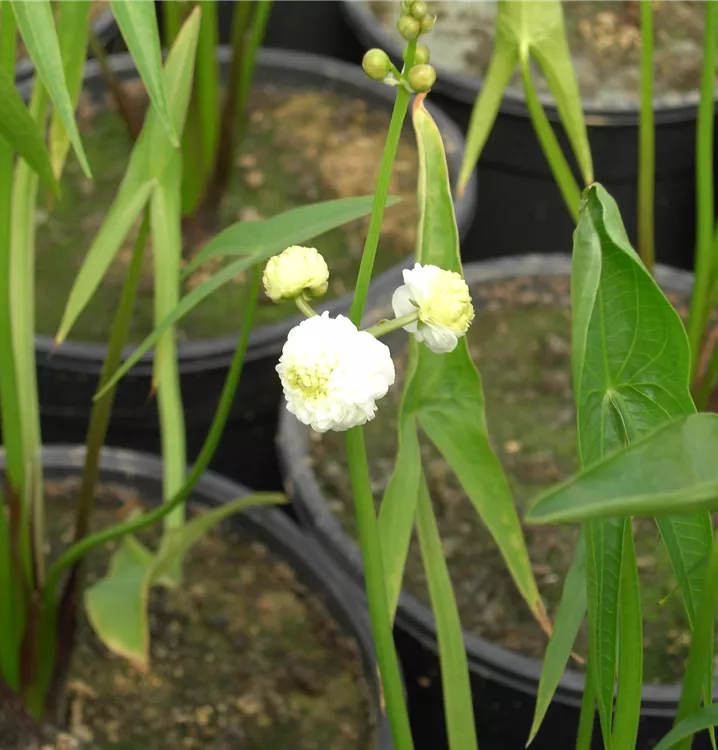 Das Gewöhnliche Pfeilkraut (Sagittaria sagittifolia) ist mit seinen dunkelgrünen Blättern eine ausgesprochen dekorative Wasserpflanze, die für solche Einsatzbereiche wie Kübel, Teichrand, Bachlauf, Teich und Bienenweide besonders gut geeignet ist. Weiße Blüten erscheinen von Juni bis August. Es bevorzugt humosen Boden in sonniger bis halbschattiger Lage. Das Gewöhnliche Pfeilkraut ist gut frostverträglich. Die aufrechte, horstbildende Pflanze erreicht gewöhnlich eine Höhe von ca. 40 cm.