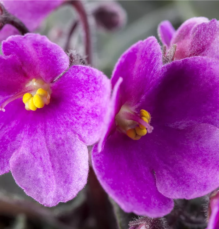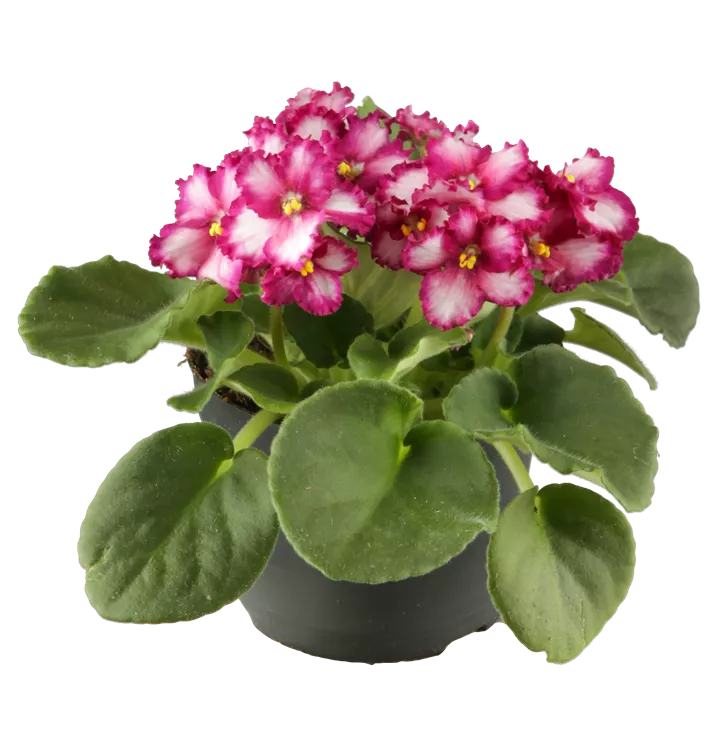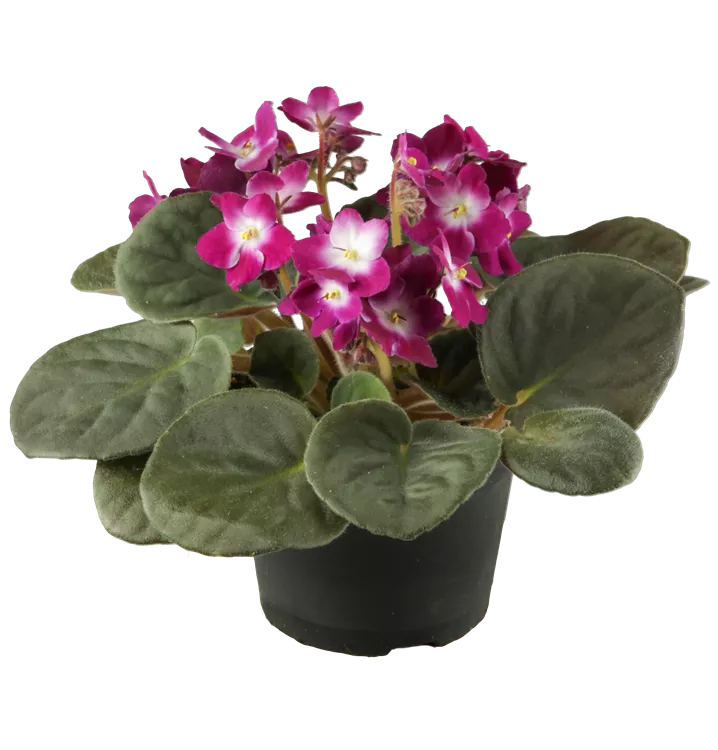 Das Echte Usambaraveilchen (Saintpaulia ionantha) ist eine weiß, rosa, rot oder lila blühende Pflanze, die rundliche, dunkelgrüne, behaarte Blätter trägt. Diese kompakte Pflanze gedeiht am besten an einem sonnigen Standort.
