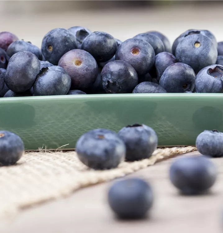 Die Blaubeere (Vaccinium myrtillus) bildet dunkelblaue Beeren. Diese sind süß-säuerlich, fruchtig im Geschmack. Für eine ertragreiche Ernte ab August schaffen humoser, lockerer, sandiger, saurer, schwachsaurer Boden und ein sonniger bis halbschattiger Standort optimale Bedingungen. Ihre grün-roten Blüten sind eine schöne Erscheinung.