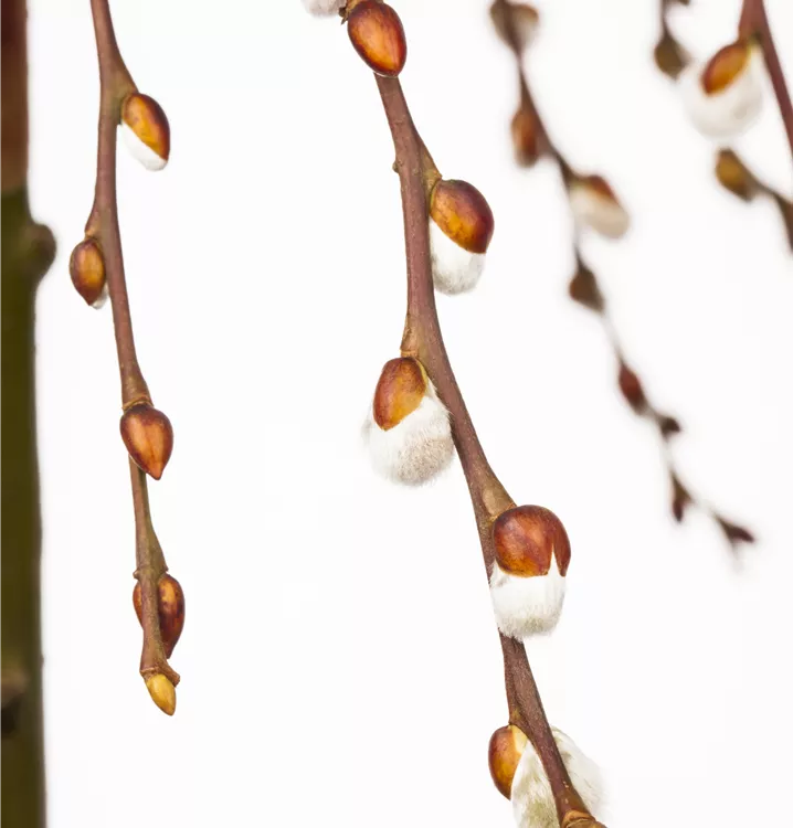 Die Hängende Kätzchenweide 'Pendula' weist eine gute Frosthärte auf.