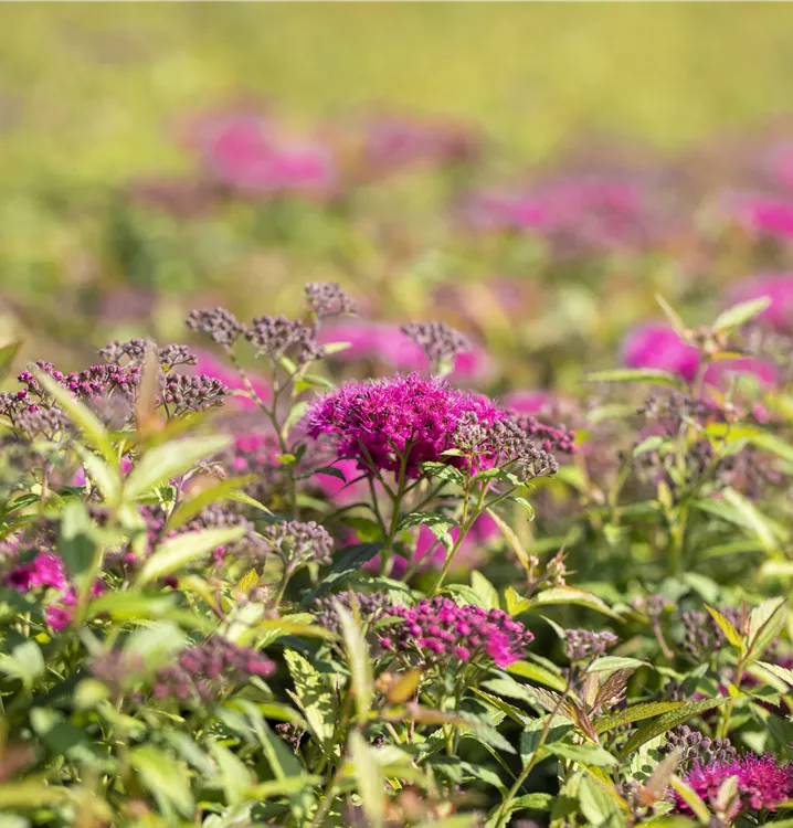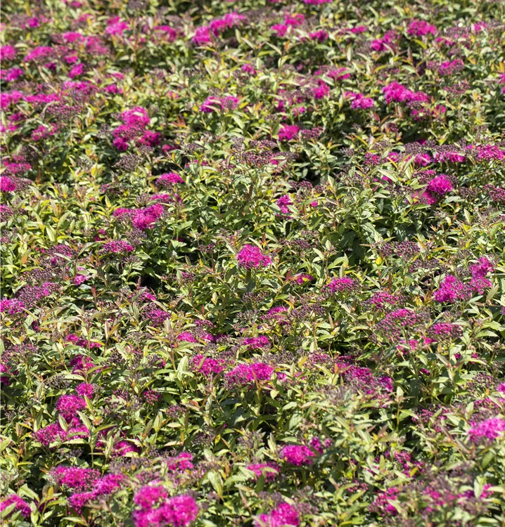 Die Sommerspiere 'Anthony Waterer' (Spiraea japonica) ist ein kompakter, aufrechter, dichter Kleinstrauch, der magentafarbene, in Trugdolden angeordnete Blüten hervorbringt. Sie erscheinen von Juli bis September. Zudem trägt die Sommerspiere 'Anthony Waterer', lanzettliche, hellgrüne Blätter. Der rote Austrieb ist ebenso ein interessanter Anblick. An einem sonnigen bis halbschattigen Standort mit durchlässigem Boden erreicht sie gewöhnlich eine Höhe von ca. 80 cm und wird ca. 80 cm breit.