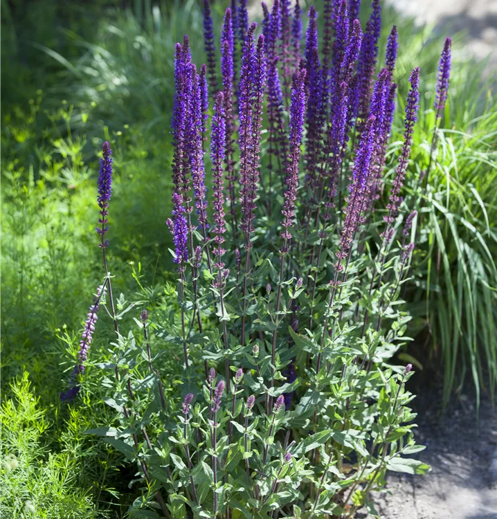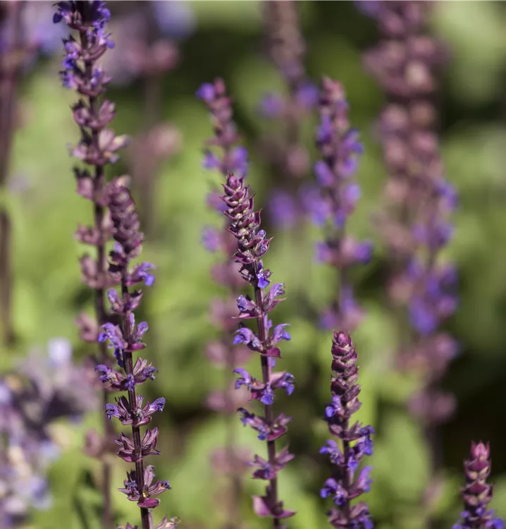 Salvia nemorosa bildet lippenförmige, in Rispen angeordnete, violette Blüten ab Juni. Diese verströmen einen angenehmen Duft. Bei richtiger Pflege Nachblüte im September.