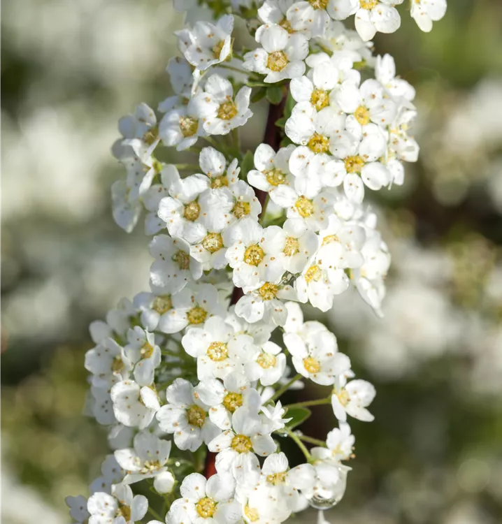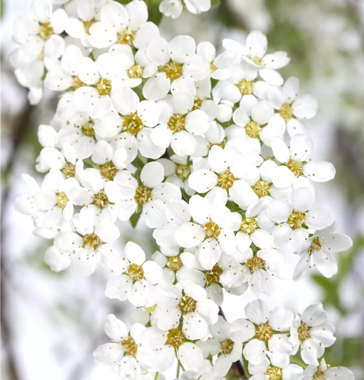 Die Weiße Rispenspiere 'Grefsheim' (Spiraea x cinerea) ist ein lockerer, überhängender Strauch, der weiße, in Doldentrauben angeordnete Blüten mit einem angenehmen Duft hervorbringt. Sie erscheinen von Ende April bis Anfang Mai. Zudem trägt die Weiße Rispenspiere 'Grefsheim', lanzettliche, mittelgrüne Blätter. An einem sonnigen bis halbschattigen Standort erreicht sie gewöhnlich eine Höhe von ca. 2 m und wird ca. 1,75 m breit. An den Boden stellt die Weiße Rispenspiere 'Grefsheim' keine besonderen Ansprüche.