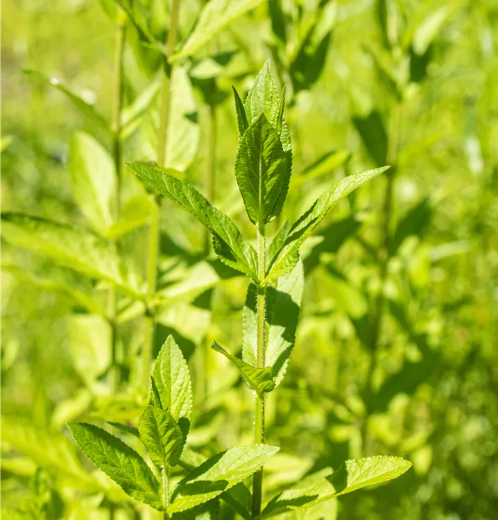 Die sommergrünen Blätter des Sumpf-Ziests sind grün, lanzettlich, gezähnt.