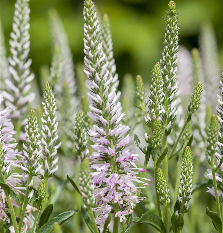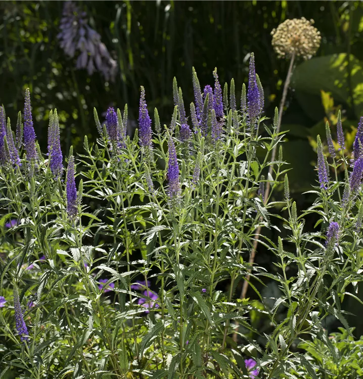 Veronica spicata bildet rachenförmige, in Ähren angeordnete, blaue Blüten ab Juni.