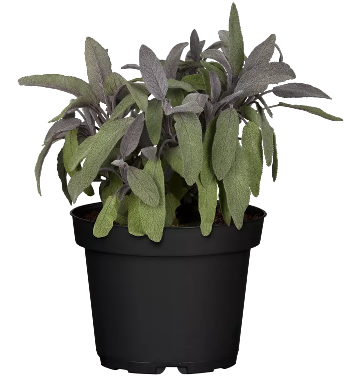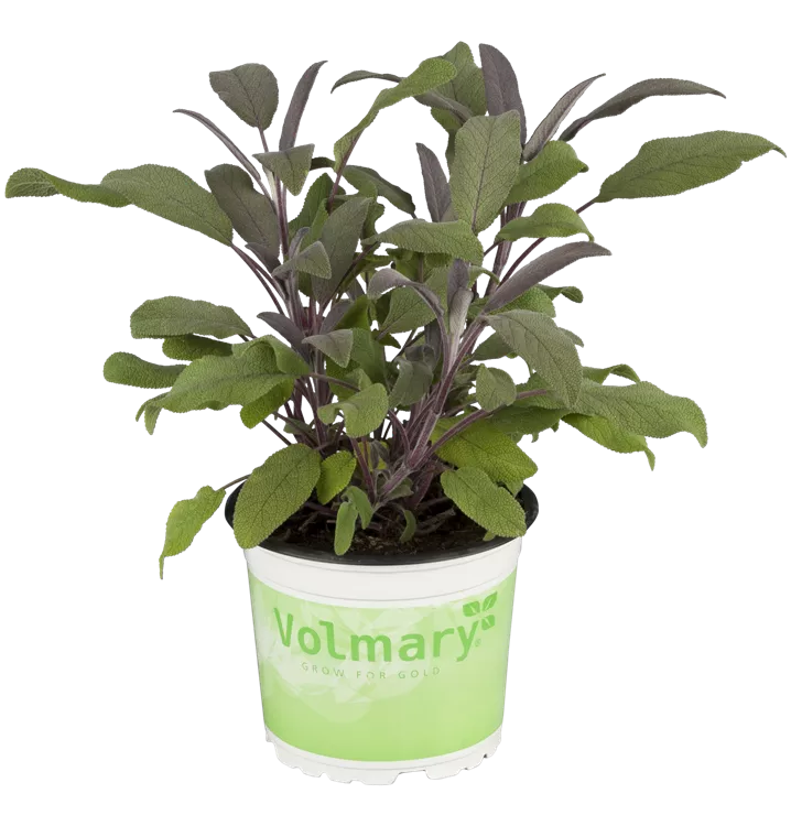 Der Garten-Salbei 'Purpurea' (Salvia officinalis) ist eine buschige, wintergrüne Staude mit dekorativen, behaarten, lanzettlichen, violetten Blättern. Von Juni bis August trägt er violette, lippenförmige Blüten. An einem sonnigen Standort mit durchlässigem, nährstoffreichem Boden erreicht er gewöhnlich eine Höhe von ca. 80 cm und wird ca. 1 m breit. Der Garten-Salbei 'Purpurea' ist gut frostverträglich.