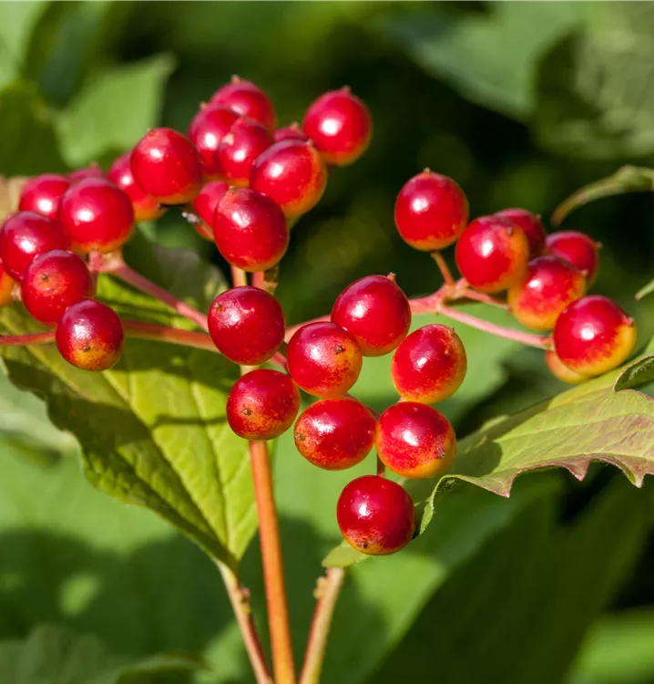 Besonders dekorativ sind die roten Steinfrüchte von Viburnum opulus. Diese erscheinen ab September.Haften sehr lange.