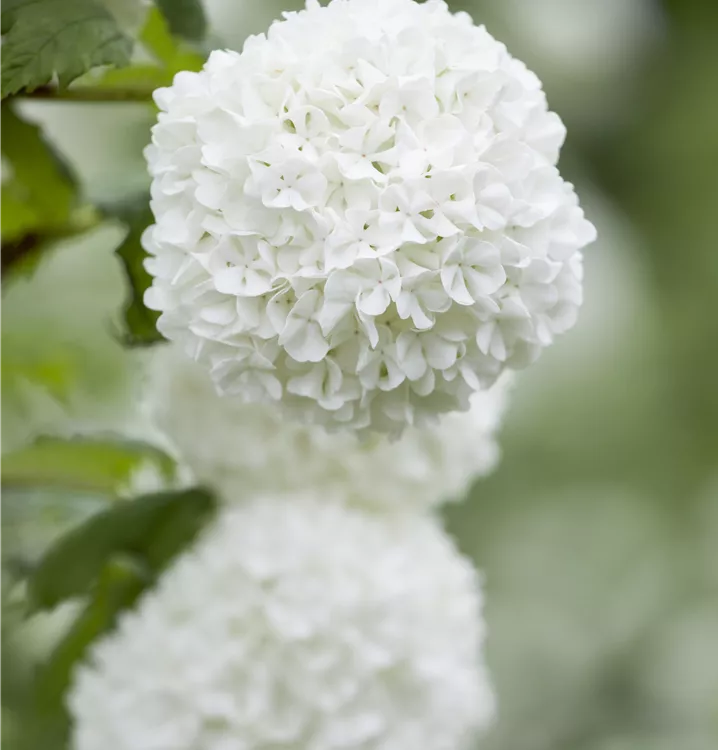 Die weißen Blüten des Gemeinen Schneeball erscheinen in Schirmtrauben von Mai bis Juni.