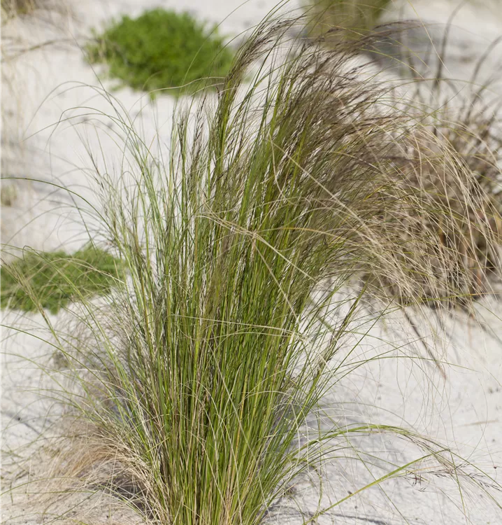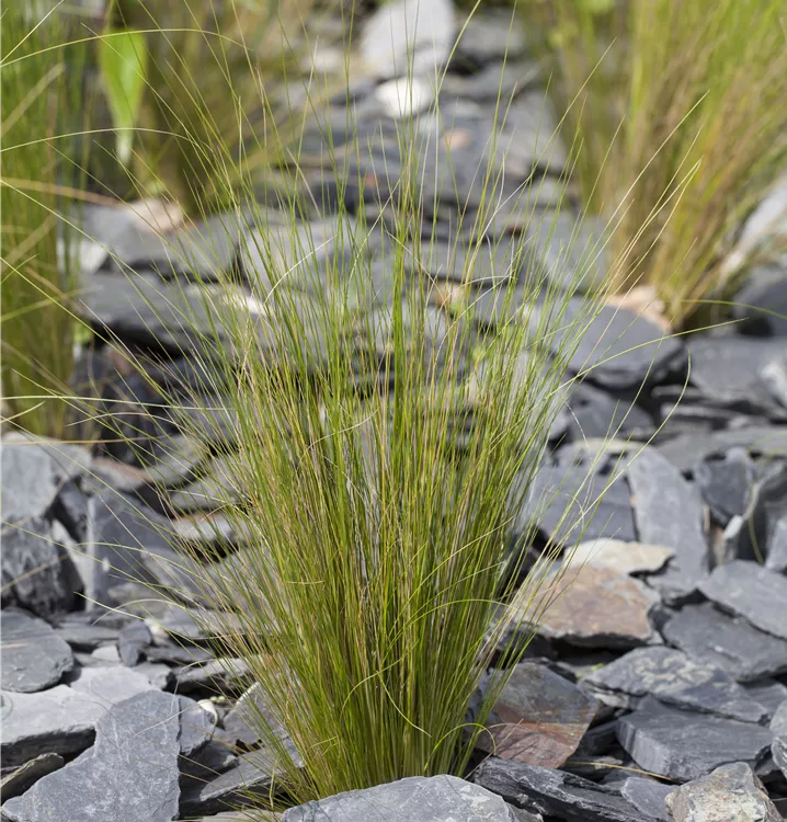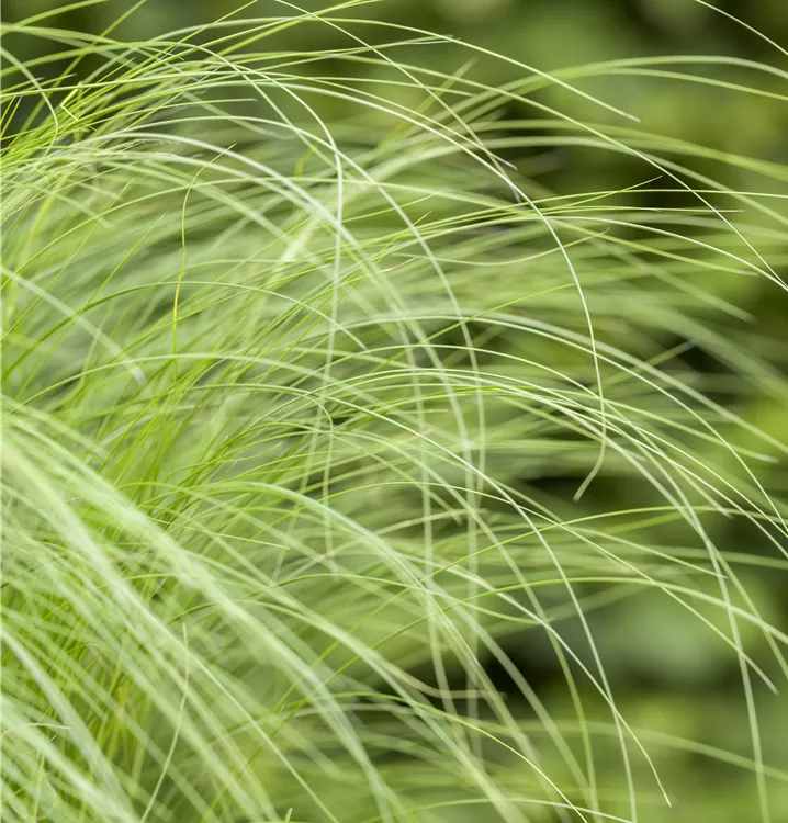 Das Zarte Federgras (Stipa tenuissima) ist mit seiner hellgrünen Blattfärbung ein dekoratives Gestaltungselement im Garten, welches ebenso mit seinem ausladenden und horstbildenden Wuchs hervorsticht. Die cremeweißen Blütenrispen schmücken diese Gras ab Sommer. An einem sonnigen Standort mit einem möglichst durchlässigen, lockeren, trockenen Boden fühlt es sich am wohlsten. Bei günstigen Bedingungen erreicht dieses winterharte Gras eine Höhe von ca. 50 cm und wird bis zu 30 cm breit.