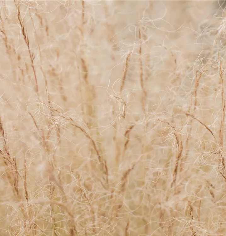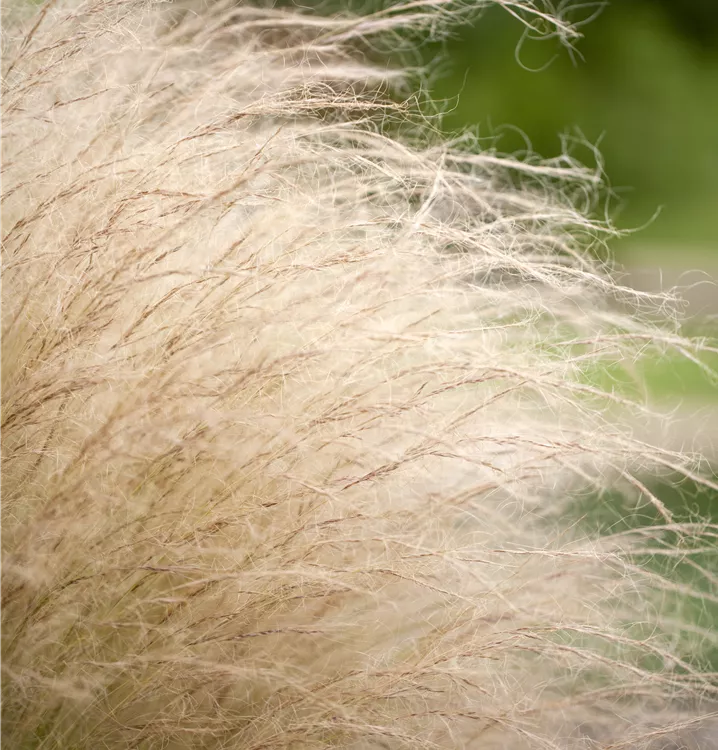 Die cremeweißen Blüten des Zarten Federgras erscheinen in Rispen von Juni bis Juli.