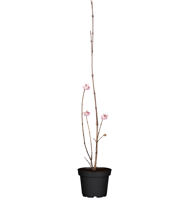 Der Winterschneeball (Viburnum x bodnantense) ist ein lockerer Strauch, der hellrosafarbene Blüten mit einem starken Duft hervorbringt. Sie erscheinen von Februar bis April. Zudem trägt der Winterschneeball, mittelgrüne Blätter. An einem sonnigen bis halbschattigen Standort mit durchlässigem, lockerem Boden erreicht er gewöhnlich eine Höhe von ca. 3 m und wird ca. 3 m breit.