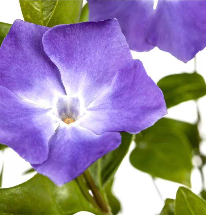 Vinca major bildet radförmige, blauviolette Blüten ab Mai. Diese werden etwa 3 - 4 cm groß.