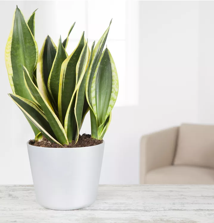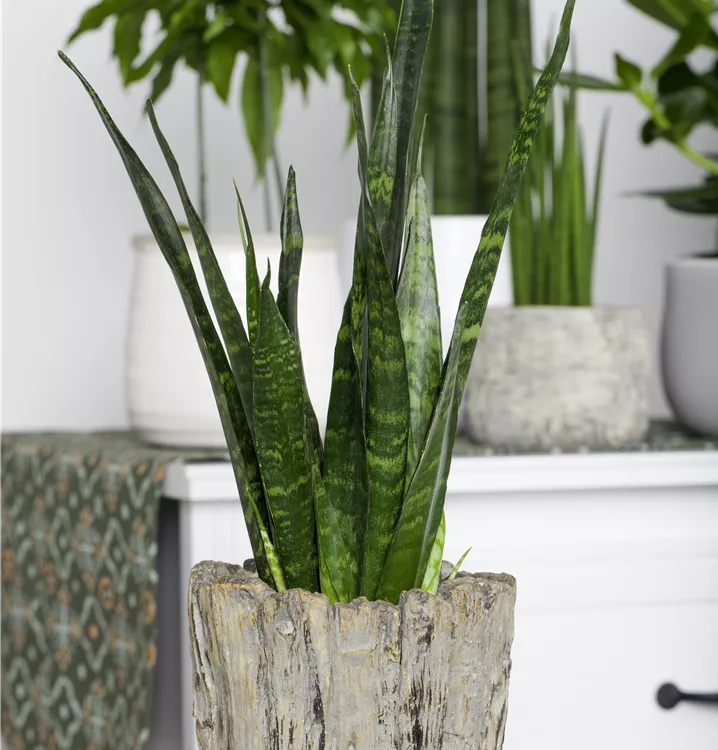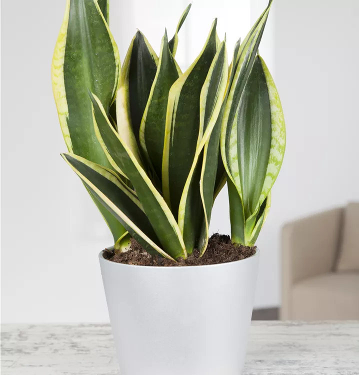 Der Bogenhanf (Sansevieria trifasciata) ist eine cremeweiß blühende Pflanze, die lineale, dunkelgrüne Blätter trägt. Seine Blüten verströmen einen starken Duft und erscheinen von Januar bis Dezember. Diese aufrechte Pflanze gedeiht am besten an einem hellen Standort.