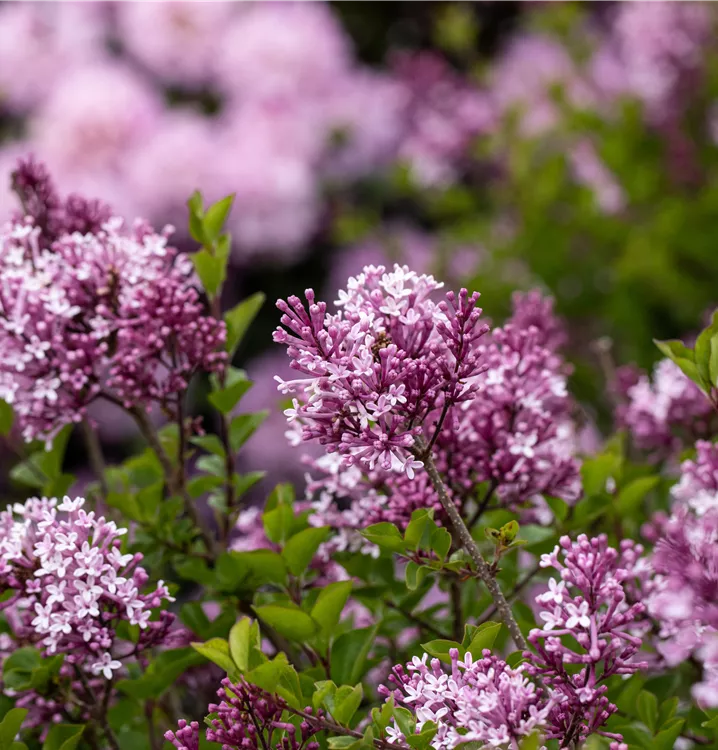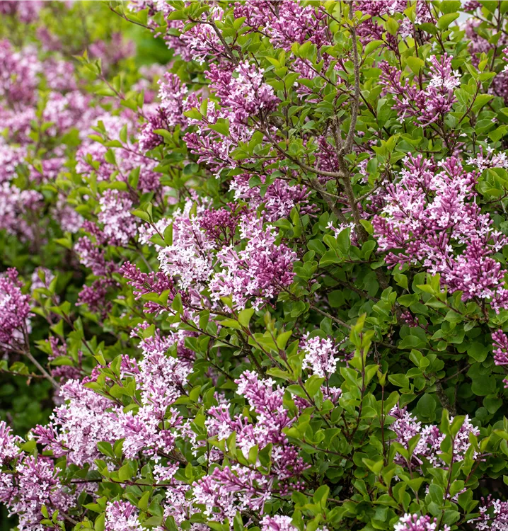 Die lilafarbenen Blüten des Meyer´s Flieder 'Palibin' erscheinen in Rispen von Mai bis Juni. Diese sind stark duftend.