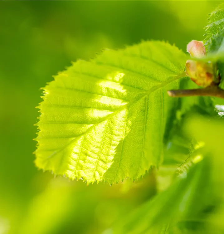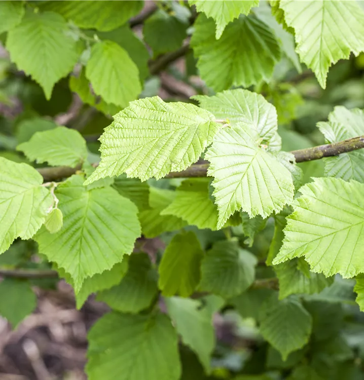 Die sommergrünen Blätter der Waldhasel sind mittelgrün, rundlich, wechselständig, gesägt. Diese sind etwa 6 - 10 cm groß. Waldhasel zeigt sich leuchtend orangegelb im Herbst.