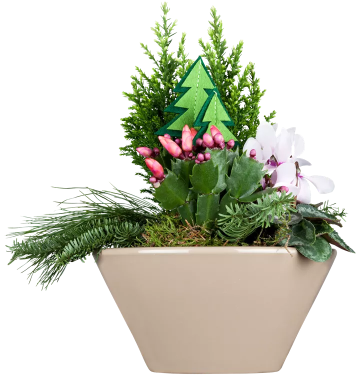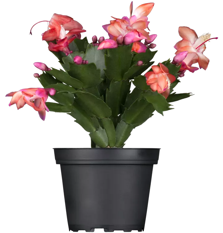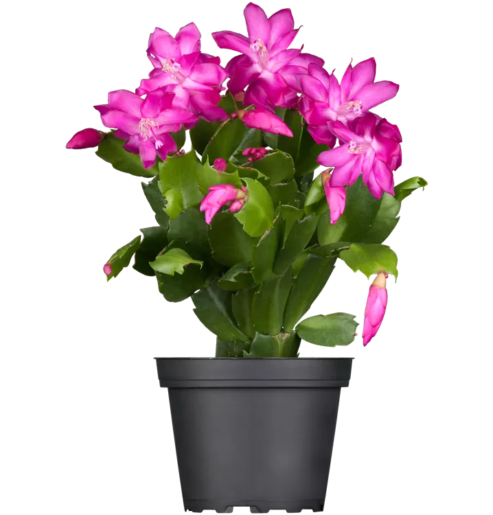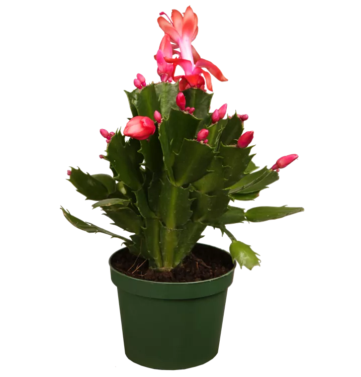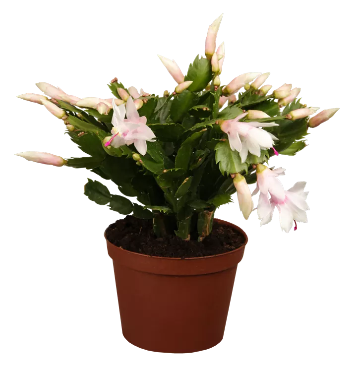 Der Weihnachts-Kaktus (Schlumbergera bridgesii) ist eine Pflanze mit dunkelgrünen, dickfleischigen Blättern. Seine Blüten sind weiß, rosa oder rot und erscheinen von Dezember bis Februar. Diese aufrechte Pflanze gedeiht am besten an einem sonnigen bis halbschattigen Standort.
