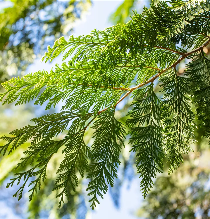 Der Riesen-Lebensbaum (Thuja plicata) ist ein Gehölz, welches locker wächst und gewöhnlich eine Höhe von ca. 15 m und eine Breite von ca. 6 m erreicht. Seine schuppenförmigen Blätter haben eine mittelgrüne Färbung. Dekorative braune Zapfen zieren Thuja plicata ab August. Dieses Gehölz ist gut frostverträglich.Er bevorzugt durchlässigen, nährstoffreichen, sauren, schwachsauren Boden in sonniger bis halbschattiger Lage.