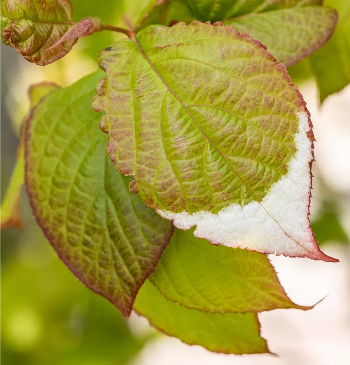 Hoher Blattschmuckwert. Die sommergrünen Blätter des Scharfzähnigen Strahlengriffels sind mehrfarbig, eiförmig, wechselständig. Diese sind etwa 10 - 15 cm groß.
