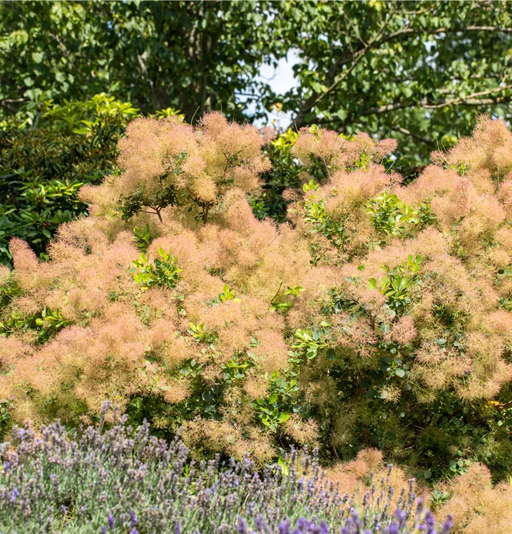 Perückenstrauch ist ein ausladend wachsender Großstrauch. Er erreicht gewöhnlich eine Höhe von 3 - 5 m und wird ca. 2,5 - 5 m breit. In der Regel wächst er 20 - 50 cm pro Jahr.