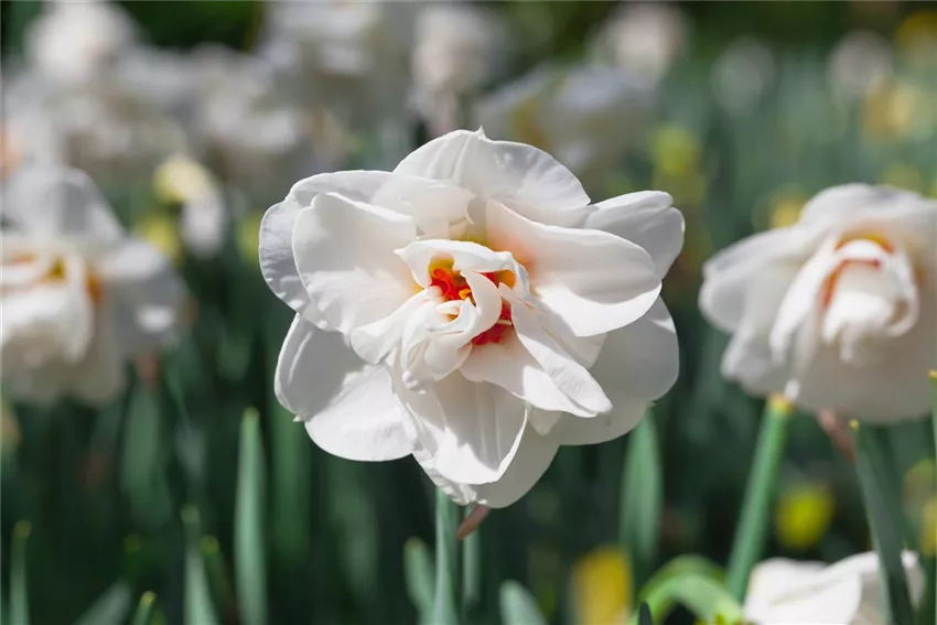Narcissus Weiße Narzissen und Tulpen sind eine wunderbare Kombination für den Frühling auf dem Balkon. Zwischendrin ein schönes Gras oder etwas Efeu sorgt für die nötigen Ruhezonen. Ohne das Highlight Stiefmütterchen kommt man kaum aus. Ein reizvolles Duett entsteht zusammen mit seiner Doppelgängerin, dem Hornveilchen, das freilich viel länger blüht. Drei Farb-Kompositionen zusammenstellen, und damit ist der Frühling auf dem Balkon angekommen. Primeln bieten sich für eine kleine, aber feine Unterbepflanzung an. Duftveilchen und Vanilleblumen bedienen die Freude am Geruchssinn.