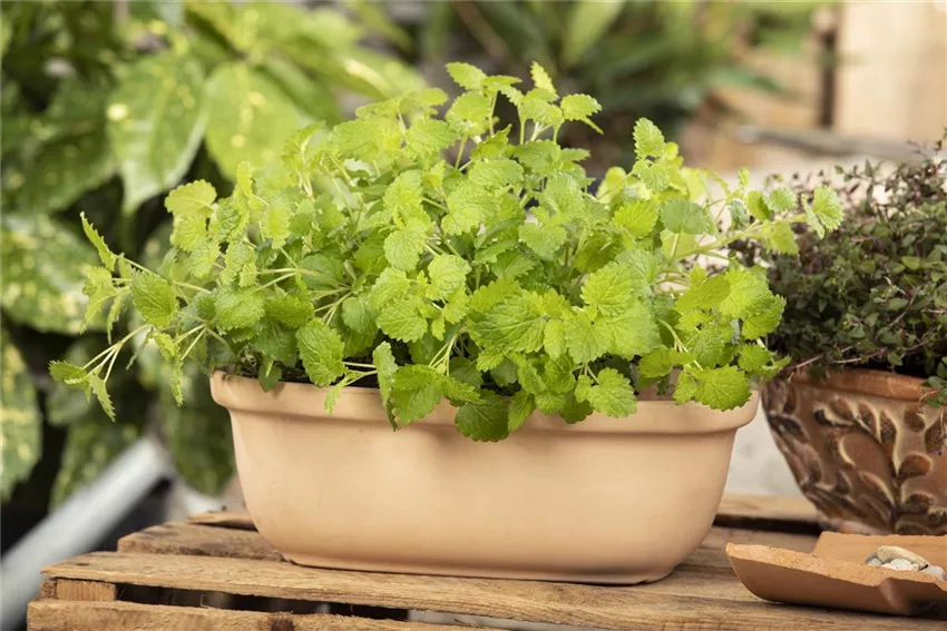 Melissa officinalis Generell gilt bei Kräutern auf dem Balkon das Gleiche wie im Garten: gepflanzt werden darf, was gefällt und vor allem schmeckt. Deshalb sollte man auf dem Balkon auch nur die Kräuter pflanzen, die man auch wirklich mag und in der Küche verwenden will. Wem der Anblick der Kräuter aber auch ausreicht, der darf natürlich auch das pflanzen, was optisch gefällt. So gibt es genug Balkonbesitzer, die den Duft und den Anblick von Lavendel lieben, ihn aber in der Küche nicht verwenden würden. Außerdem sind Kräuter auf dem Balkon auch ein guter Schutz vor Insekten. Ihre ätherischen Öle halten nämlich unliebsame Besucher fern und sorgen für ungestörte Stunden auf dem Balkon. Und ganz nebenbei sind sie damit auch noch eine Wohltat für die Nase. Zum Anbau der Kräuter eignen sich am besten Gefäße aus Ton oder Terrakotta. Sie sollten über ein Abzugsloch verfügen, damit keine Staunässe entsteht und überschüssiges Gießwasser einfach ablaufen kann. Damit beim Gießen keine Erde ausschwemmt, kann eine Drainageschicht mit Kies angelegt werden oder eine Tonscherbe über dem Abzugsloch platziert werden. Wichtig ist auch, dass die Kräuter nicht zu dicht nebeneinander gepflanzt werden, weil sie doch größer werden können als anfangs vermutet.