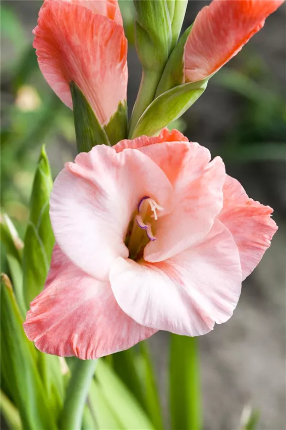 Gladiolus, rot-weiß Sommerblüher sind empfindlich und werden deshalb im Herbst des Vorjahres ausgegraben. Sie überwintern im Haus an einem dunklen und kühlen Ort. Dort sollten sie trocken gelagert und regelmäßig auf Schädigungen und Krankheiten geprüft werden. Gelegentliches Anfeuchten kann hilfreich sein, damit sie nicht austrocknen. Sobald der Startschuss für die neue Sommersaison gefallen ist, werden sie wieder hervorgeholt. Geranien und Dahlien können dann schon ab Februar oder März im Haus gedeihen und kommen wie die anderen Zwiebeln nach den Eisheiligen in den Balkonkasten oder Garten.