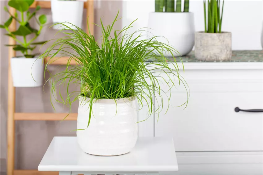 Cyperus zumula Pflegeleicht und mit skulpturaler Wirkung präsentieren sich die Vertreter der Drachenbäume ( Dracaena ), die leicht bis zu zwei Meter hoch werden. Für Dschungelambiente sorgt der Baumfreund ( Philodendron ), während buschig wachsender Bambus ( Bambusa ) für exotisches Asia-Flair steht. Filigrane Zimmerlinden ( Sparmannia africana) fügen sich perfekt in klassische bis rustikale Landhaus-Interieurs ein, während die Riesen-Alokasie ( Alocasia macrorrhiza ) mit ihrer grafischen Ausstrahlung jede moderne Wohnwelt bereichert. Ein besonderer Hingucker ist die Glückskastanie ( Pachira aquatica ), auch Wilder Kakaobaum genannt. Oft werden mehrere Pflanzen zu einem Stamm geflochten, was ihr ein besonders apartes Erscheinungsbild verleiht. Zwischen zwei Wassergaben sollte man die Erde gut trocknen lassen; auf Staunässe reagiert sie sehr empfindlich. Auch Zypergras ( Cyperus ) kann zu einem stattlichen, bis anderthalb Meter hohen Mitbewohner heranwachsen. Pflegeleicht und anspruchslos, muss man bei Zypergras darauf achten, ausreichend zu gießen, denn es zu den ganz wenigen Zimmerpflanzen, die Staunässe nicht übel nehmen – im Gegenteil! Attraktiv ist Zypergras dank seiner eleganten Wedel auch in Solitärstellung.