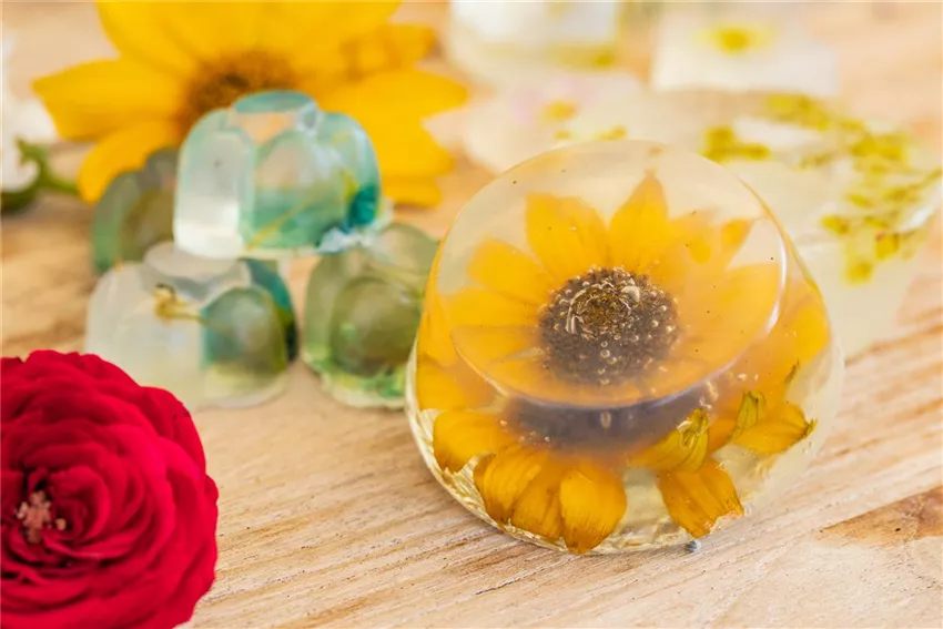 Blumenseife Kosmetik-Artikel eignen sich immer besonders gut als Geschenk für liebe Menschen. Wenn die dann auch noch selbst gemacht sind, ist das etwas ganz Besonderes. Blumenseife sieht nicht nur besonders hübsch aus, sie riecht auch noch gut.