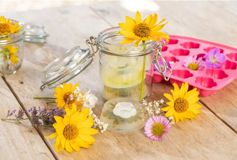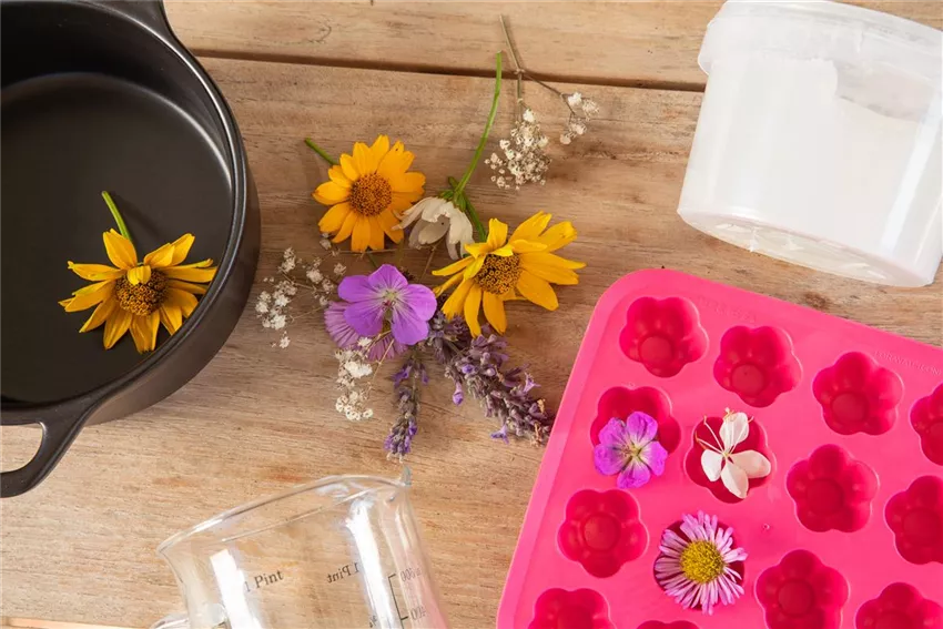 Die Blüten in der Blumenseife hängen natürlich ganz von der Jahreszeit ab. Im Frühling lassen sich zum Beispiel Hyazinthen und Narzissen wunderbar in die Seife einarbeiten. Die sehen nicht nur schön aus, sondern duften von sich aus auch besonders gut. Im Sommer ist Lavendel natürlich der Klassiker. Aber auch Ringelblumen lassen sich gut in die Seife integrieren und sind auch noch gut für die Haut. Im Herbst machen Herbstastern, Hornveilchen und kleine Sonnenhüte eine gute Figur in der Seife. Und auch im Winter lassen sich Blüten finden. Duftschneeball, Mahonie und Seidelbast haben in der kalten Jahreszeit tolle Blüten zu bieten und bringen Farbe ins Spiel. Zu Weihnachten machen sich Aromen wie Zimt oder Orangen aber auch besonders gut.