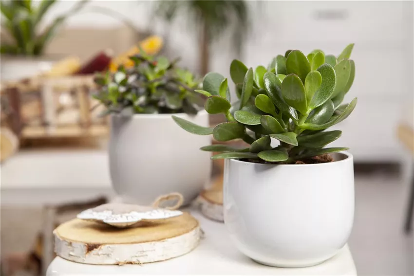 Crassula ovata 'Magical Tree' Urlaub ist nicht nur gut für Menschen, sondern auch für Pflanzen. Und obwohl es Zimmerpflanzen nichts ausmacht, wenn sie den Sommer über in der Wohnung bleiben, der Urlaub an der frischen Luft hat einige Vorteile. Vor der Tür bekommen die Zimmerpflanzen mehr Licht und bessere Luft. Außerdem freuen sich die Zimmerpflanzen auch über den ein oder anderen Regenschauer. Pflanzen jeder Art lieben Regenwasser und der Regen spült ganz natürlich die ein oder andere Staubschicht von den Blättern. Dass sich die Pflanzen wohl fühlen, erkennt man dann an dem satten Grün der Blätter und an einer höheren Blütenpracht. Zimmerpflanzen, die im Haus bleiben müssen, werden in dieser Zeit nicht so kräftig wachsen, wie die Kollegen im Sommerurlaub. Dabei spielt es keine Rolle, zu welchem Zeitpunkt die Zimmerpflanzen blühen. Im Sommer blühende Zimmerpflanzen werden an der frischen Luft mehr Blüten ausbilden und kräftiger wachsen. Im Winter blühende Zimmerpflanzen können an der frischen Luft neue Kräfte sammeln und sich für die Blütezeit im Winter vorbereiten. Ein Urlaub lohnt sich im Sommer also allemal.