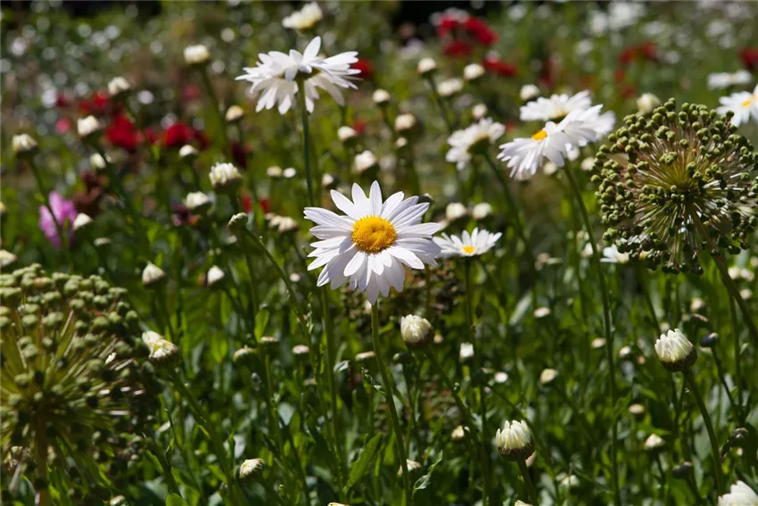 Beet Natürlich gibt es auch den pflegeleichten Garten nicht ohne Stauden. Sie bringen Leben ins Beet. Für wenig Aufwand greift man zu einigen ausgewählten Sorten und pflanzt jeweils mindestens drei Individuen. Unterschiedliche Höhen beachten und gute Farbkombinationen wählen und schon kann der Sommer auch für den Hobbygärtner mit begrenzter Freizeit kommen. Robuste Pflanzen sind gefragt. Allen voran Frauenmantel und Wolfsmilch. Für den Frühling empfehlen sich dann das dicht wachsende Blaukissen, die hohen Lupinen, der farbenprächtige Nelkenwurz und viele attraktive Lilienarten; für den Sommer die rustikale Stockrose, die exotische Gladiole, das zarte Schleierkraut und die strahlende Sonnenbraut. Zum Schluss all die wunderschönen Dahlien und Astern, die den Herbst einläuten.