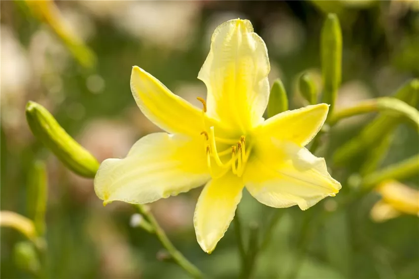 Hemerocallis Schon die eleganten, langen Blätter der Taglilie überzeugen, aber das Highlight sind natürlich die lilienähnlichen Blüten. Wie auch ihr lateinischer Name es ausdrückt, existieren viele davon nur 24 Stunden. „Hemerocallis“ bedeutet nämlich Tag und Schönheit. Züchtungen haben dafür gesorgt, dass es die charmante Pflanze mittlerweile in vielen Farben gibt. Wenn sich nun Gartenliebhaber und Feinschmecker in einer Person finden, landet die exotisch anmutende Blüte auch mal auf dem Teller. Effektiver kann man eine liebevoll angerichtete Mahlzeit nicht dekorieren. Die rein pflanzliche Dekoration muss aber nicht übriggelassen werden. Die Blüten-Schönheit aus dem gelben, roten oder blauen Spektrum des Regenbogens bringt süßlichen Geschmack mit, der direkt aus ihrem Nektarvorrat stammt und wunderbar mundet. So wundert es auch nicht, dass schon die knackigen Knospen der Taglilie zum kulinarischen Einsatz kommen. Sie finden sich in der Pfanne wieder, von wo aus sie nach kurzem Anbraten als Zusatz zu Salat oder als edles Tüpfelchen auf der Fleischspeise wandern.