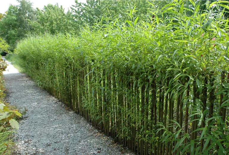 Lebendige Grundstückseinfriedungen oder Sichtschutzelemente lassen sich mit verschiedenen Weiden-Arten sehr schön realisieren. Der Name Weide deutet auf die hohe Biegsamkeit der Ruten hin, denn es leitet sich aus dem Indogermanischen „ueie“ ab, was so viel bedeutet wie biegen, winden, drehen. Neben der guten Biegsamkeit des Holzes zeichnen sich Weiden zudem durch ein schnelles und oftmals gerades Wachstum aus.