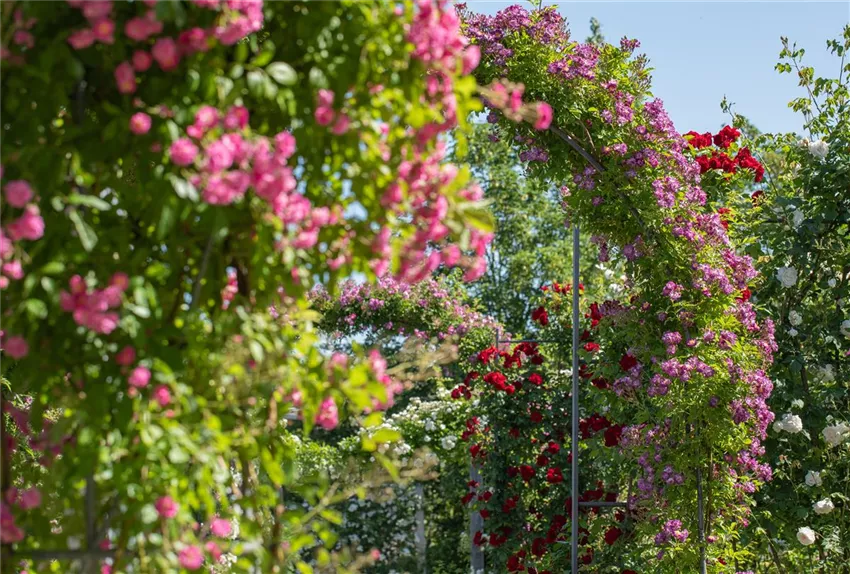 Unangefochten auf Platz 1 der Kletterpflanzen ist die Kletterrose. Die Königin der Blumen ist an sich schon ein Highlight, aber als Kletterrose bietet die Kletterpflanze Möglichkeiten, die keine andere Rosenart bietet. Wer kennt nicht den romantischen mit roten Rosen verhangenen Rosenbogen, der immer wieder in dem ein oder anderen Liebesfilm auftaucht? Und genau dieser Rosenbogen lässt sich mit einer Kletterrose auch in den eigenen Garten holen. Kletterrosen verschönern aber nicht nur den klassischen Rosenbogen, sondern auch Spaliere und sogar Hauswände. Wie wäre es mit einer roten oder weißen Kletterrose direkt neben der Haustür? Wer es weniger romantisch, dafür aber exotischer mag, der ist mit einer Clematis auf der richtigen Seite. Diese Kletterpflanze kann bis zu 8 Meter groß werden und rankt sich überall da entlang, wo sie ihre Ranken hinbringen. An einem Rankgitter kann man mit der Clematis sogar ganze Hauswände begrünen. Die Clematis gehört zu den schnell wachsenden Kletterpflanzen und ist damit perfekt geeignet, wenn schnell ein Effekt gewünscht ist.