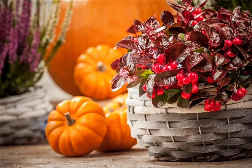 Gaultheria procumbens Wenn der Altweibersommer gekommen ist, wird es Zeit, sich um die Herbstdekoration zu kümmern. Die Haustür braucht einen neuen Kranz, und daneben ist bestimmt noch genügend Platz für einen jahreszeitlich passenden Willkommensgruß.