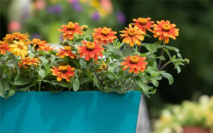 Zinnia haageana Die Klassiker unter den sogenannten Balkonblumen sind allerdings die Einjährigen, die nicht überwintern und als blühende Pflanzen gekauft werden. Meist sind sie sonnenhungrig, auch wenn es Ausnahmen gibt, die auch im Halbschatten oder Schatten ihre Pracht entfalten. Zu denen, die nicht die volle Sonne mögen, gehören beispielsweise die Fuchsien, die es als stehende und hängende Variante gibt.
