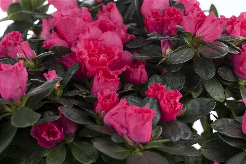 Rhododendron simsii Mittlerweile sind von der fernöstlichen Schönheit über 100 verschiedene Sorten erhältlich. Wem die Farben Rosa, Pink oder Lachsfarben nicht gefallen, der hat keine Ausrede mehr, denn die Zimmerazalee gibt es auch in Weiß, Rot und Gelb. Auch die Blütenform unterscheidet sich: einige Blüten haben weit geöffnete Trichter, andere einen eher röhrenförmigen Trichter und wieder andere Blüten besitzen eine Schlundzeichnung. Wer seine Zimmerazaleen besonders gut auswählt, kann sich das ganze Jahr über an der Blütenpracht der asiatischen Schönheiten erfreuen. Die Blütezeiten der Sorten reichen von August bis Februar.