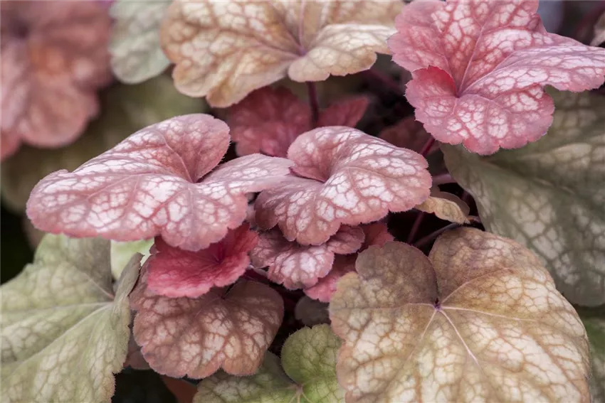 Heuchera Wer ein Purpurglöckchen im Garten sieht, sieht eine zierliche Pflanze mit filigranen, kleinen Glöckchenblüten und zarten Stielen, an denen die Blütenrispen scheinbar über dem Staudenbeet schweben. Der erste Gedanke ist da nicht gleich: diese Pflanze ist bestimmt winterhart und äußerst robust. Und trotzdem: das Purpurglöckchen ist genau das, wonach es nicht aussieht. Einige Sorten der Pflanze entwickeln bei Kälte sogar noch schönere Blattfarben.