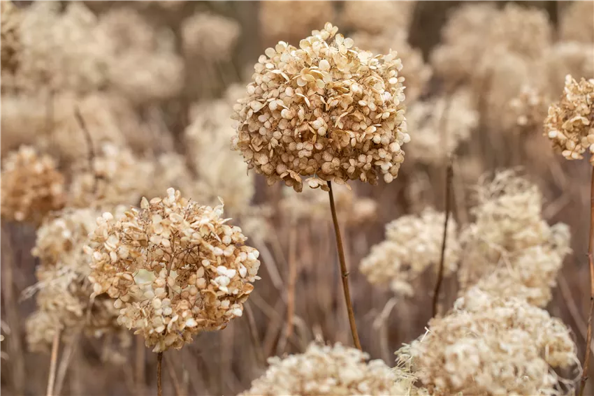 Hydrangea Hortensien, die im Hortensienbeet gehalten werden, sind meist bedingt winterhart. Denn Hortensien gehören zu den Halbsträuchern und verholzen lediglich an der Basis ihrer Triebe aus dem aktuellen Jahr. Die Triebspitzen jedoch, die schon Ansätze für die Knospen im kommenden Jahr aufweisen, können deshalb bei zu starkem Frost erfrieren. In Regionen mit eher kälteren Wintern empfiehlt sich deshalb unbedingt ein geeigneter Winterschutz. Sonst könnte in einem ganz besonders kalten Winter leicht die ganze Blütenpracht erfrieren. Am besten ist es jedoch bei empfindlichen Sorten, die Hortensien im frostfreien Winterquartier überwintern zu lassen, um auch im Winter die Hortensien pflegen und hegen zu können. Ein unbeheiztes Gewächshaus ist hierfür ideal, aber auch ein unbeheizter, nicht zu heller Raum eignet sich dafür.