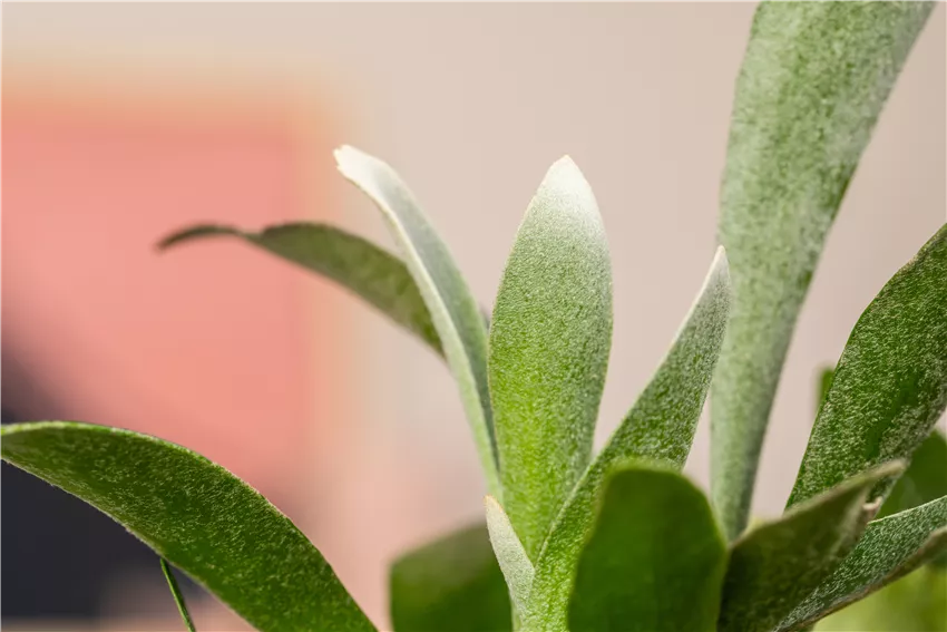 Phlebodium aureum Auch, wenn das Gefäß noch nicht zu klein ist, sollte man Zimmerpflanzen umtopfen. Als Faustregel gilt: spätestens nach drei bis vier Jahren wird es Zeit für ein neues Zuhause und frische Erde. Oft kann es auch passieren, dass sie Wurzeln der Pflanzen so stark sind, dass sie sich aus dem Gefäß heben oder das Gefäß sogar sprengen. Damit das nicht passiert, kann man die Zimmerpflanzen vorher umtopfen. Dafür kommt es vor allem auf das neue Gefäß an. Das sollte im besten Fall nicht viel zu groß sein. Um die richtige Größe zu finden, misst man vom Wurzelballen zwei bis 3 Zentimeter zu den Seiten. Größer muss das neue Gefäß nicht sein. Wichtig ist auch, sich für das passende Material zu entscheiden, Tontöpfe sind luft- und wasserdurchlässiger, als Plastiktöpfe. Dafür sind sie aber auch schwerer zu reinigen, bieten aber durch ihr Eigengewicht einen festeren Stand. Für Pflanzen, die ihre Wurzeln tief nach unten ausbreiten, sollte man höhe Gefäße nehmen. Flachwurzler sind mit einem niedrigen Gefäß zufrieden. Und was die richtige Erde betrifft? Die erkennt man nicht durch die Verpackung, sondern vor allem durch den Preis. Und den darf sie haben, denn sie muss eine Menge leisten, um die Pflanzen lange Zeit ausreichend zu pflegen. Mit torffreier Blumenerde ist man besonders ökologisch unterwegs und schützt die Umwelt.