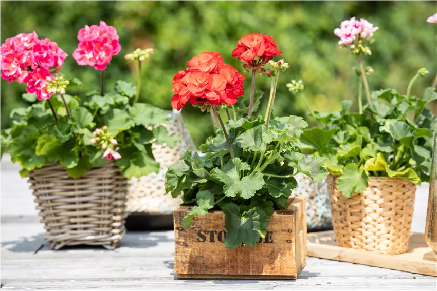 Pelargonium zonale 'Dolce Vita' Keramik ist im Grunde ein Oberbegriff für Gefäße und andere Gewerke aus gebrannter Erde. Der Unterschied zwischen Terrakotta und Ton besteht darin, dass Ton meist glasiert ist, Terrakotta aber nicht, auch wenn Terrakotta bemalt sein kann. Terrakotta verbreitet einen mediterranen Flair und ist bestens für Pflanzen aus dem Mittelmeerraum geeignet. Durch die feinen Poren können die Wurzeln gut atmen. Die Pflanzgefäße sind stabil und witterungsbeständig. Allerdings sind sie sehr schwer, was gerade bei größeren Kübeln, die ins Winterquartier müssen, zum Problem werden kann. Bewährt haben sich Pflanzenroller, die den Transport einfacher machen.