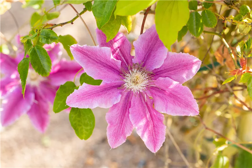 Clematis 'Dr. Ruppel' Kletterpflanzen kaufen ist immer dann eine gute Idee, wenn man den eigenen Garten in etwas ganz Besonderes verwandeln will und ein Märchen sucht. Denn kaum eine andere Pflanzengruppe sorgt für mehr mystische Stimmung, wie Kletterpflanzen.