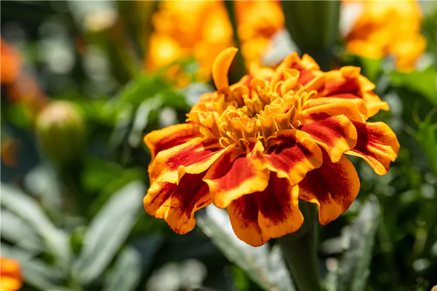 Tagetes patula, orange-rot Wer Beet und Balkon gestalten farbenfroh in die Tat umsetzen will, der sollte zuerst einen guten Plan haben. Denn obwohl man die bunten Pflanzen gut miteinander kombinieren kann, sind Standort, Bodenverhältnisse und andere Faktoren entscheidend für ein gesundes und prächtiges Wachstum. Vor allem die Ausrichtung von Balkon und Garten entscheiden darüber, welche Pflanze wo ihren neuen Platz bekommt. Auf einem Südbalkon ist die Sonne vor allem Mittags ein Thema. Hier fühlen sich Pflanzen wohl, die die Sonne lieben und mit Trockenheit kein allzu großes Problem haben. Auch ein Westbalkon ist ideal für sonnenliebende Pflanzen, denen auch ein bisschen Wind nichts anhaben kann. Ein Ostbalkon liegt oft im Halbschatten und ist ideal für Pflanzen geeignet, die zwar Licht brauchen, direkte Sonne aber eher meiden. Und wer einen Nordbalkon besitzt, der sollte auf schattenverträgliche Pflanzen zurückgreifen, da sich hier eher dunkle und kühle Ecken bilden. Auch die Größe ist entscheidend, denn einige Pflanzen brauchen ausreichend Platz, um sich frei entfalten zu können. Ein kleines Gefäß in der Ecke wäre also eher für kleinbleibende und gedrungen wachsende Pflanzen perfekt.
